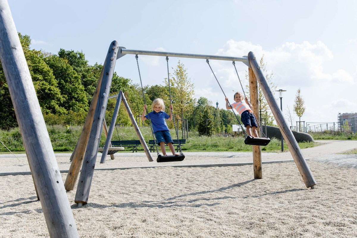 For giving the Multi-surface Swing a new design, we developed the special version with metal cross beam. The technically thought-out corner connections make the equipment very sturdy. A playground is not complete without a swing. Children need the possibility for swinging during their development. Swinging to and fro is a basic movement and is fun not only for children. Swinging has a comforting effect, removes tensions and provides pleasure, particularly if swinging is possible side by side.Recommended For